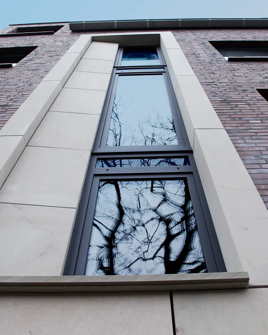 La superficie exterior de aluminio puede pintarse mediante pulverización en polvo en cualquier tono de la paleta RAL, con acabado mate o brillante, lo que da a los arquitectos total libertad en la implementación de soluciones de fachada.