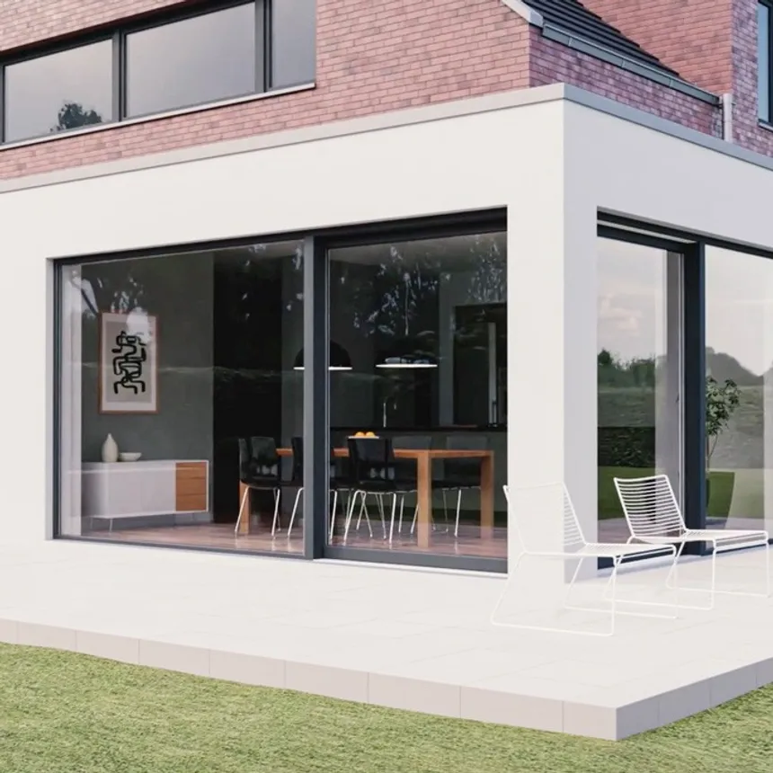 Veka Vekamotion 82 es la cima del pensamiento ingenieril en estructuras correderas. Es un sistema elevador-corredera (HS-Portal) diseñado especialmente para cubrir huecos gigantes de hasta 6 metros de ancho. El mecanismo único de los herrajes permite, al girar la manilla, elevar una hoja de hasta 400 kg y desplazarla fácilmente hacia un lado, literalmente con un dedo. Esta solución borra la frontera entre el hogar y el exterior, uniendo el salón con la terraza o el jardín de invierno en un único espacio habitable.