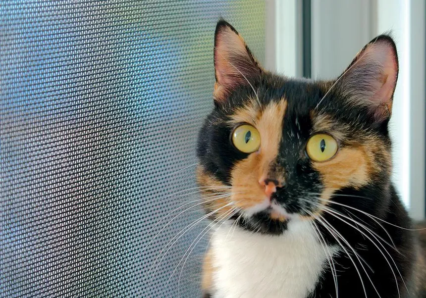 Ваш кот любит сидеть на подоконнике и даже иногда пытается охотиться на птиц, которые пролетают мимо? А потом, конечно же, начинает потягиваться и чесать когти о москитную сетку? Чтобы вам жилось спокойнее, наша компания ввела в ассортимент новый продукт — сетки с усиленным ПВХ покрытием «Антикошка». При изготовлении сетки «антикошка» применяется более плотное полотно, дополнительная обработка позволяет сделать москитную сетку настолько прочной, что ее почти невозможно порвать и вообще как-то испортить. Даже птицам и котам.